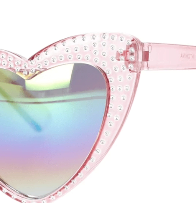 Anteojos de sol "Justice" - 100% UV - Rosa, marco corazón con strass