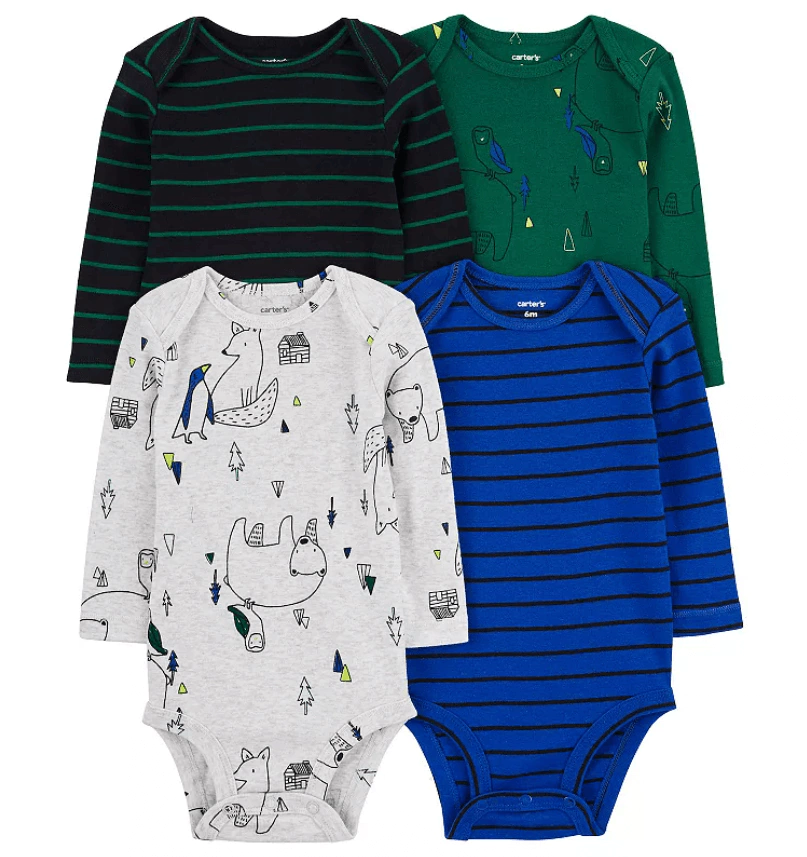 - > Bodies "Carter´s" x 4 unidades - Rayados + gris y verde con animalitos