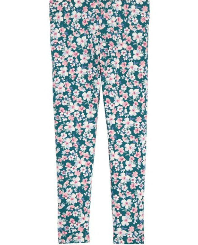 - > Calza "OshKosh" - Verde oscuro con flores rosas y blancas