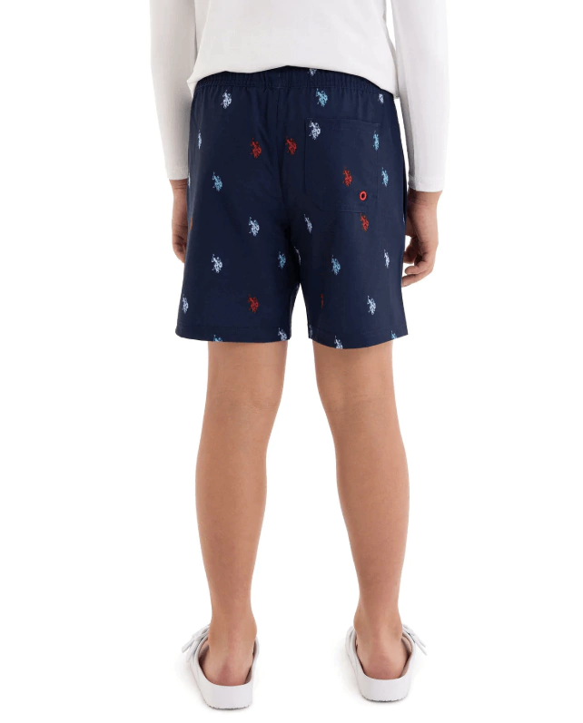 - > Malla "USPoloassn" - Azul con logos estampados blancos, celestes y rojos
