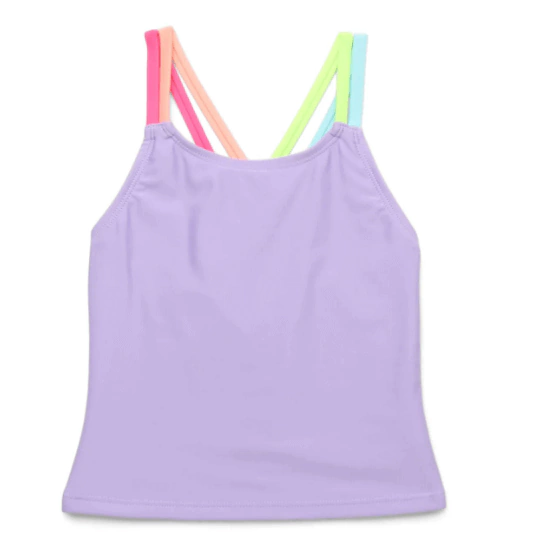 Malla "Wonder Nation" - Musculosa violeta con breteles de colores (sólo parte de arriba)