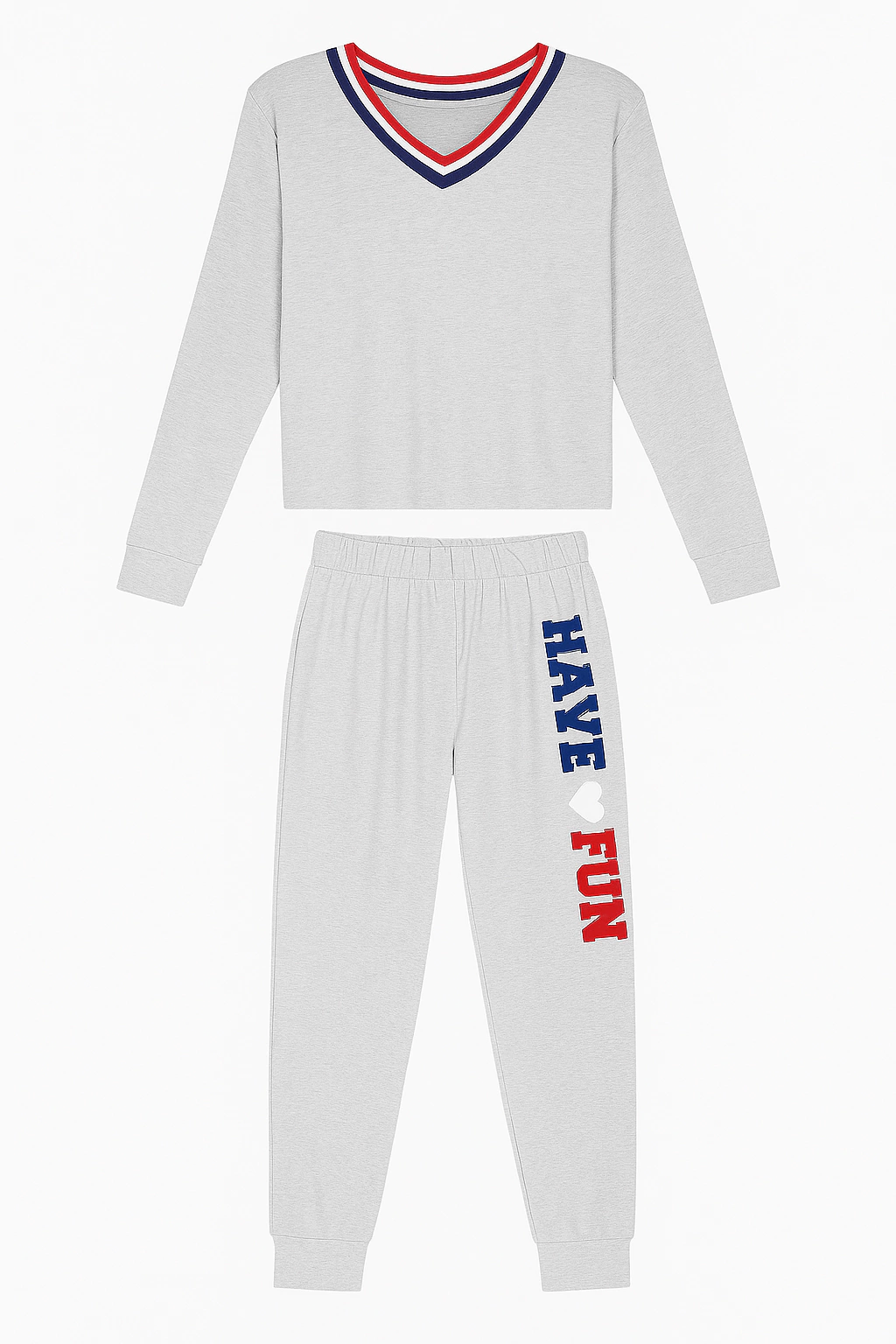 Pijama "Lencatex" - Talle adulto - Ideal adolescentes. Gris con detalles en negro, rojo y blanco