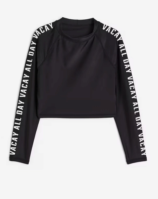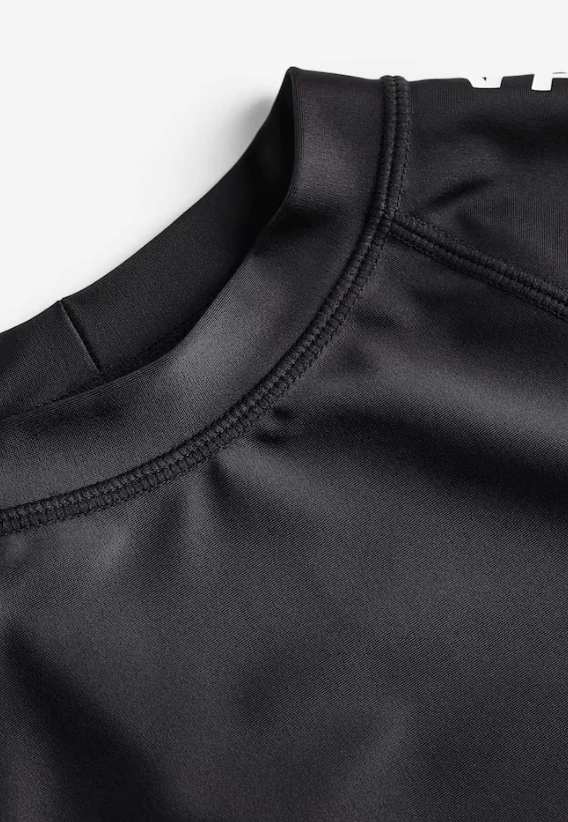 Remera UV - "H&M" - Negra con letras blancas, cortita, con mangas largas