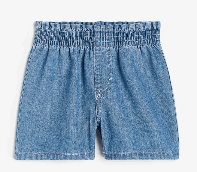 Short "H&M" - De jean blandito, azul clásico, con cintura alta elastizada